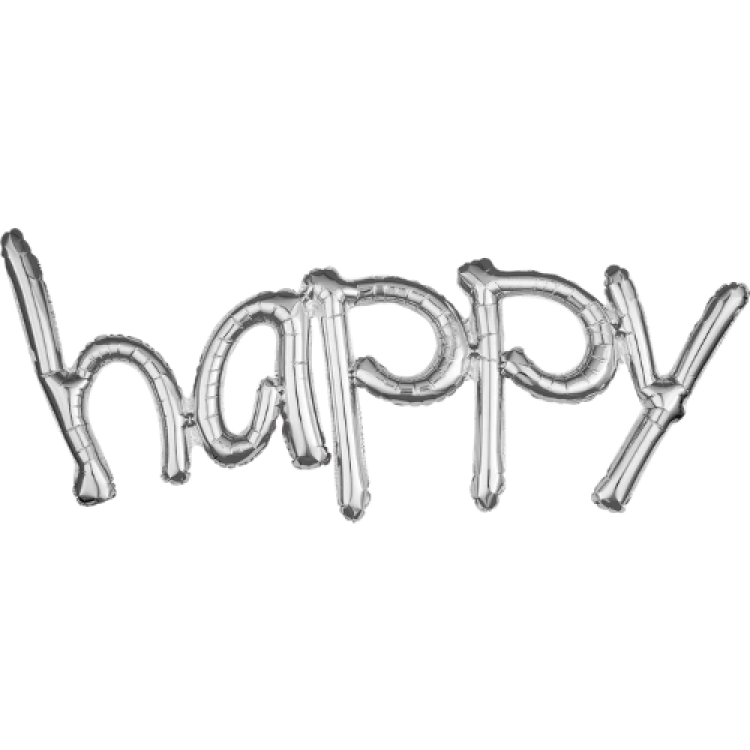 41 inch Freestyle Phrase Happy Silver Foil Balloon